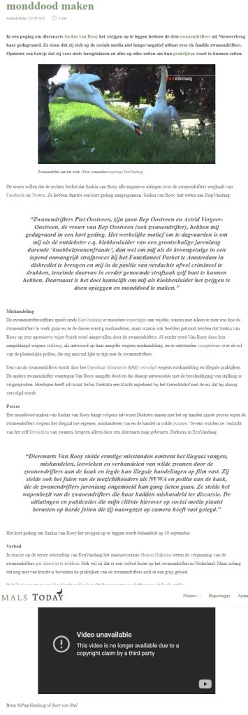 http://www.animalstoday.nl/zwanendrifters-saskia-van-rooy-monddood/